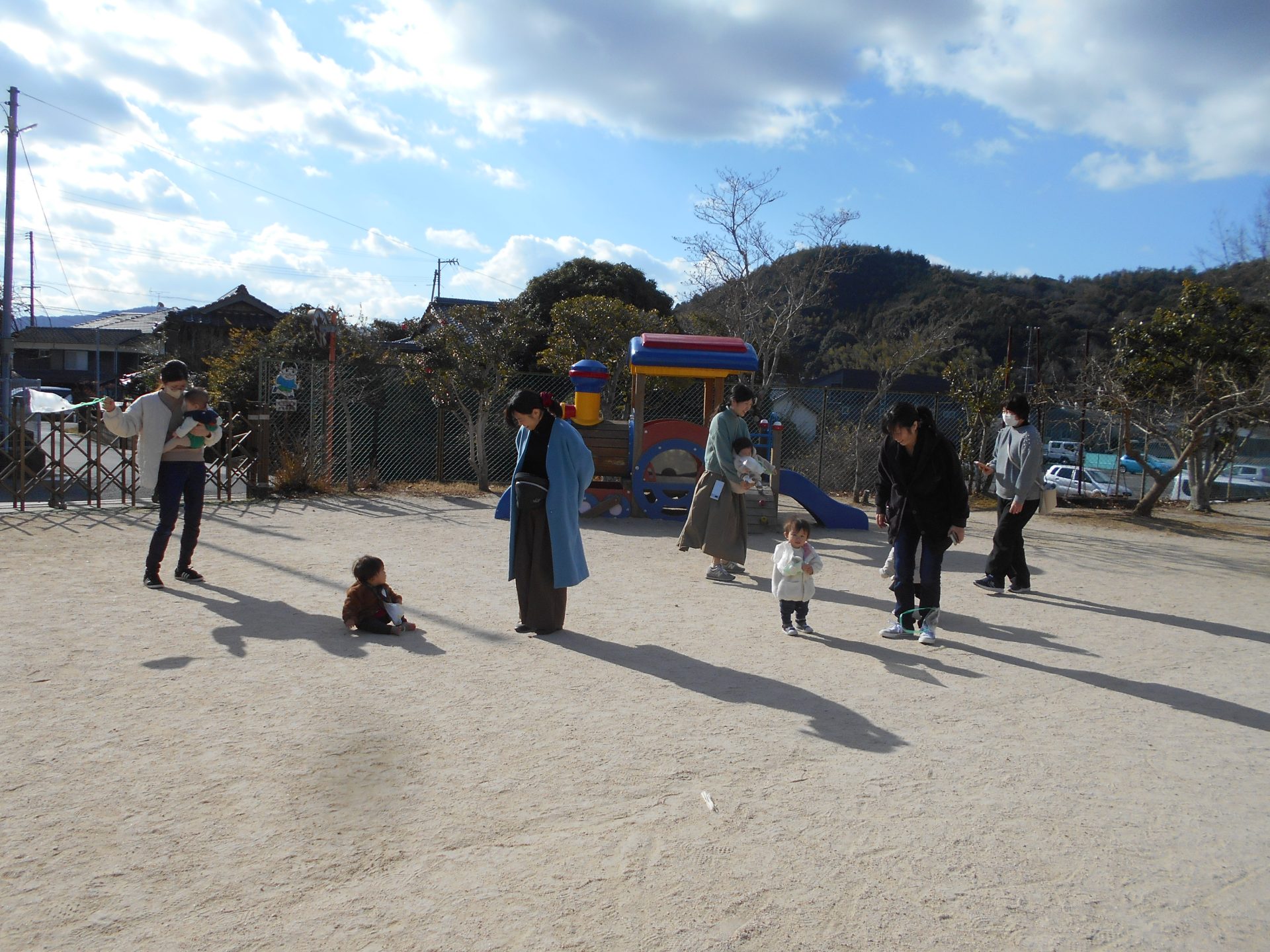 最後はお外で凧あげをして寒さに負けず楽しみました。