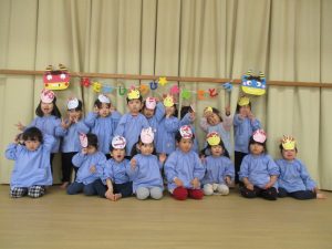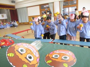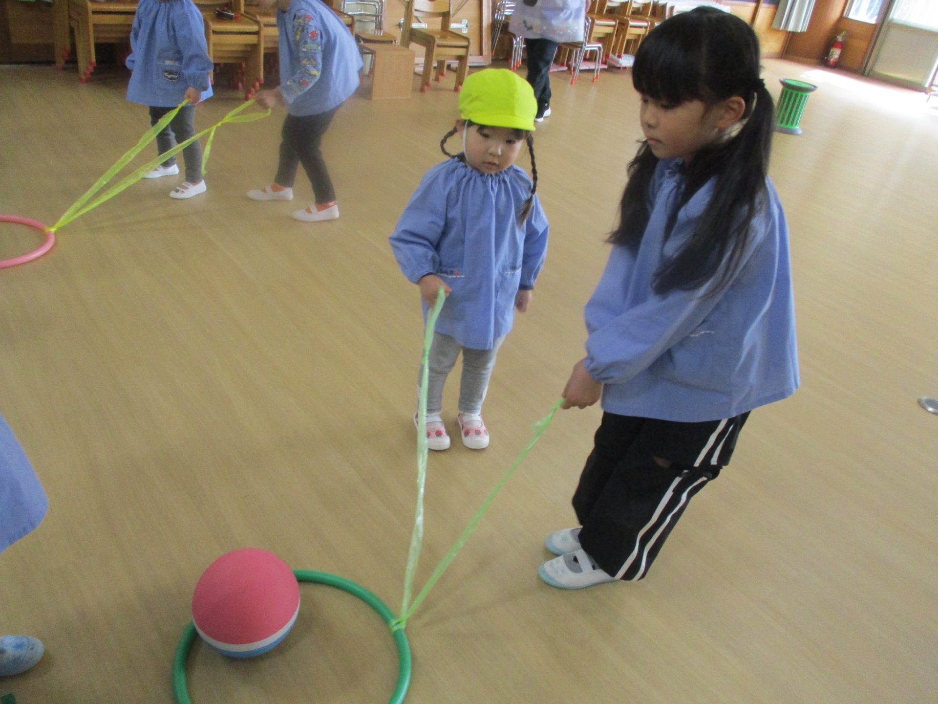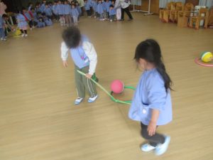 空・星・風・虹組さんはプレイルームでお別れ会をし、異年齢のチームに分かれてペアで大玉転がしや手を繋いでのリレー、フルーツバスケットを楽しみました!(^^)!。